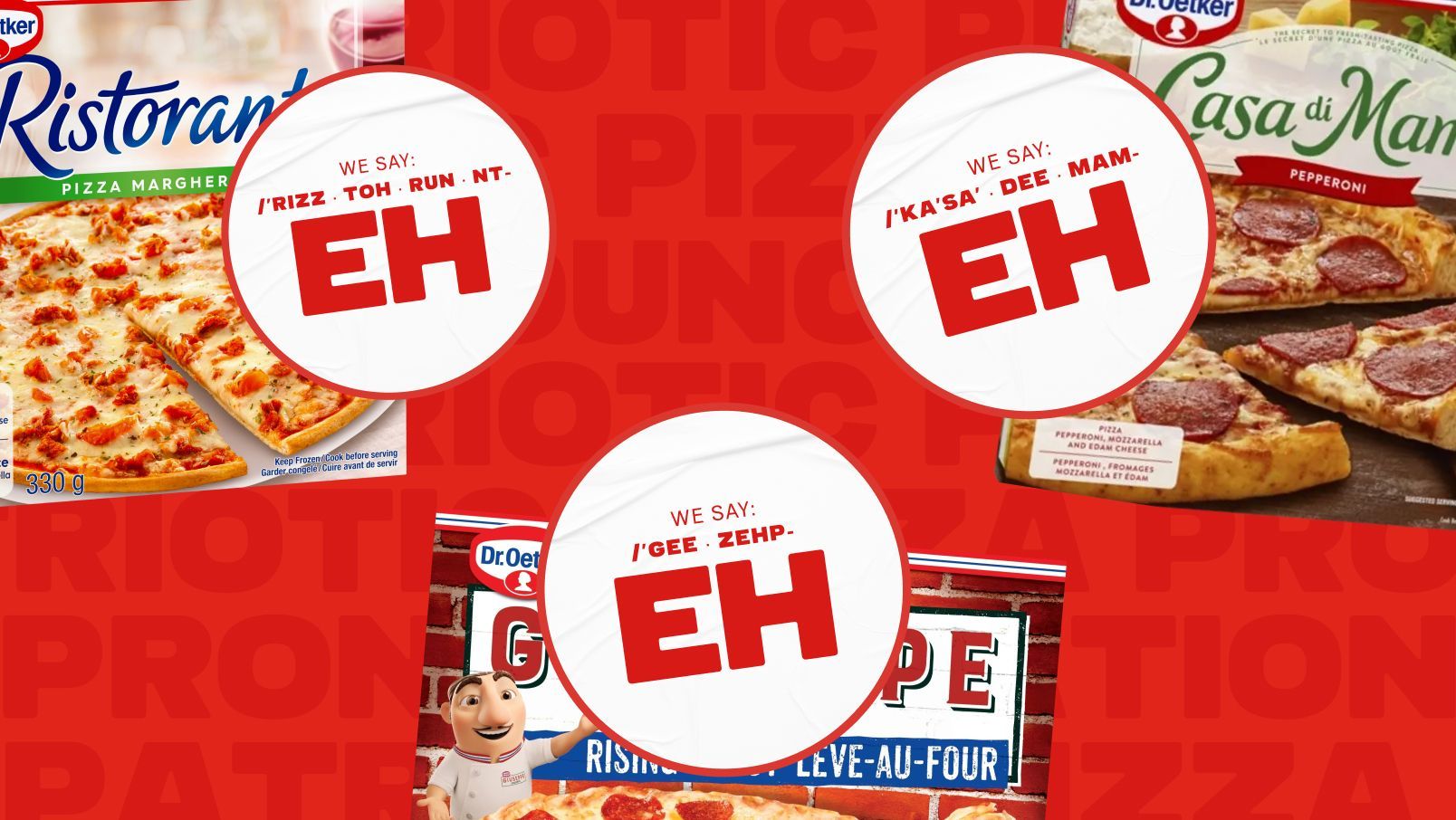 When confusing labels and misleading language made it hard for Canadians to put their money where their hearts were, we launched a patriotic pizza pronunciation PS”EH” with Dr. Oetker.